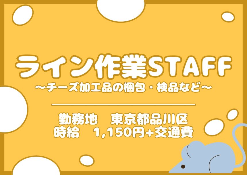 ~(⌒C・> チーズ加工品のライン作業スタッフ ~(⌒C・>