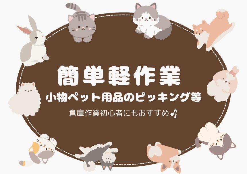 ペット商品を取り扱う倉庫でピッキング、梱包、検品その他付随する業務