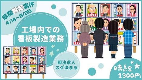 $【期間限定】時給1300円+即払♪~選挙看板作成補助~