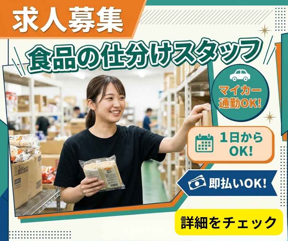 $即日振込♪倉庫内で食品の仕分けスタッフ募集!