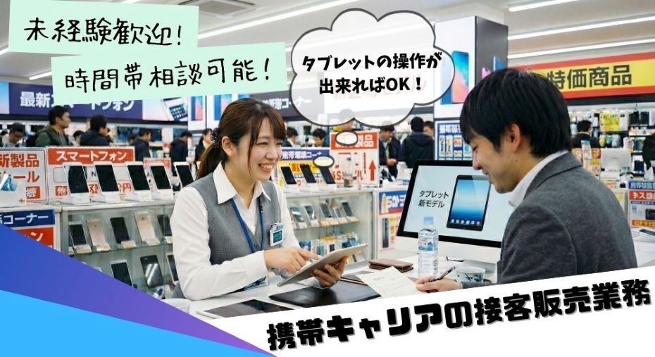 携帯電話販売店舗において携帯電話の接客・販売・契約業務をお願いします!