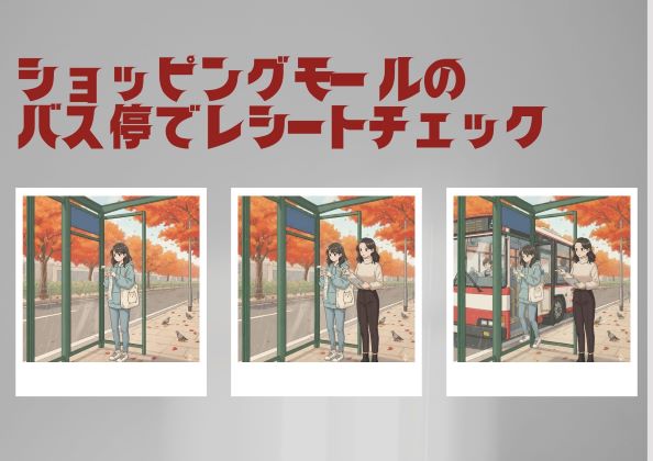 ショッピングセンターの無料バス(その日の購入レシートを見せると無料で乗れる)バス停でのレシートチェック、それに付随する業務