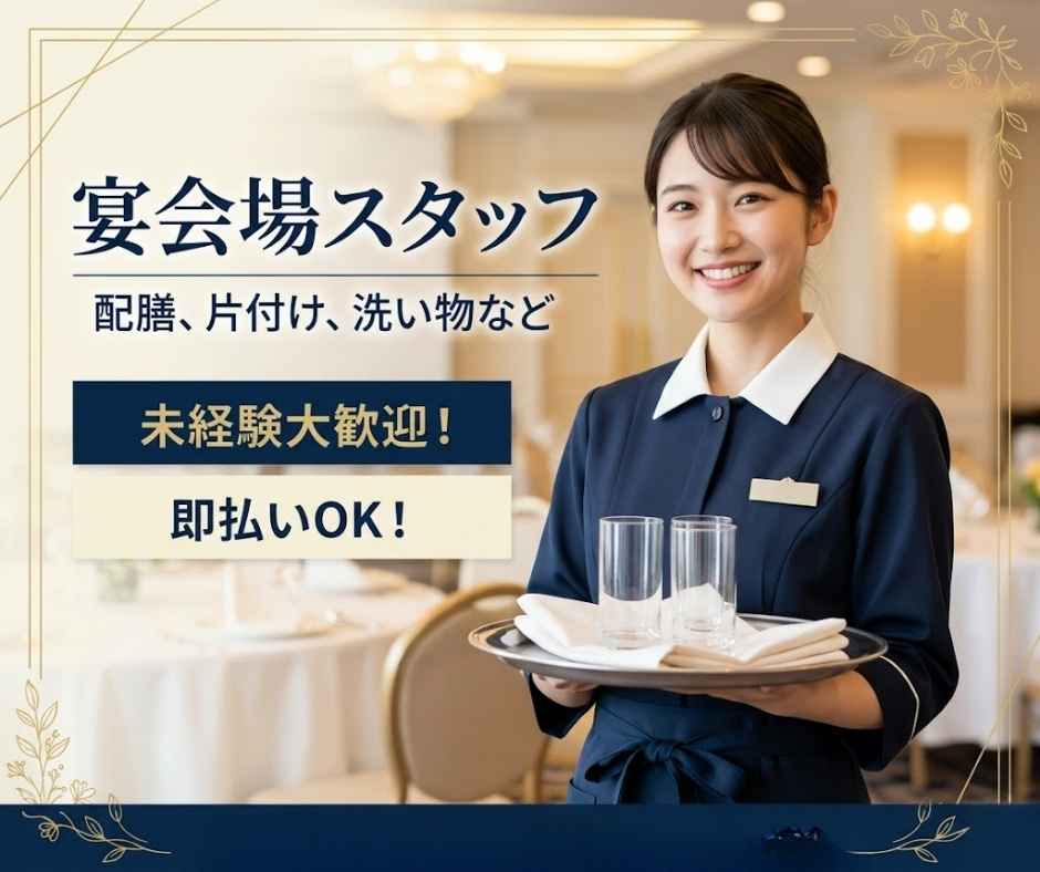 宴会場での料理・飲み物の提供、注文取り・片付け等、その他付随業務
