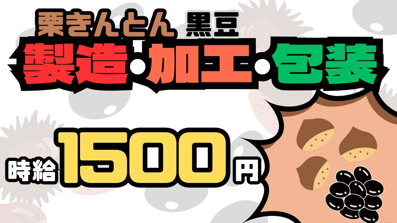 【就業内容】栗きんとんをパック詰めする前のあんの前工程 →材料となる餡を機会に流し込む作業