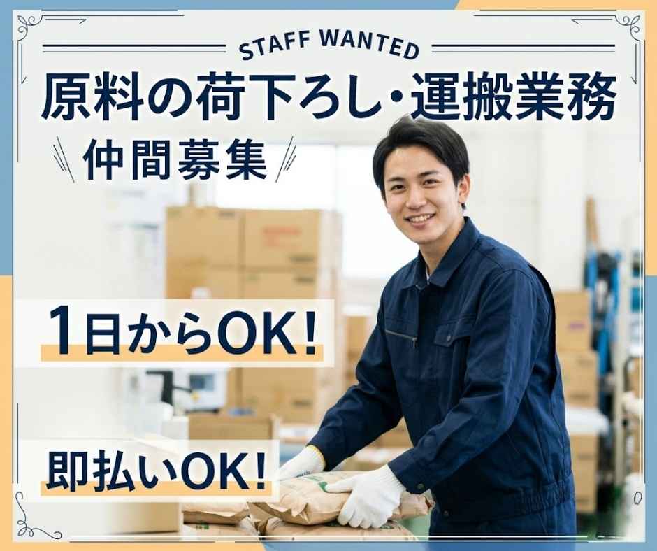 【高時給1400円】添加物原料の荷下ろし・運搬・即払い