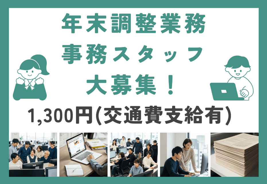 年末調整に関する書類をチェックして不備がないか確認する、不備があれば修正をする、書類の仕分け、その他不随業務あり