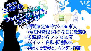◆期間限定求人◆人気の軽作業!◆3つの作業から選択可能◆即給利用可能◆初めての倉庫内作業でもOK!