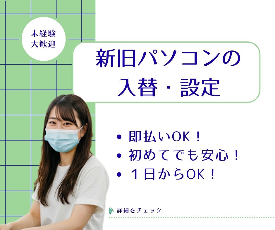 【業務内容】新旧パソコンの入替作業、新規パソコンの設定作業