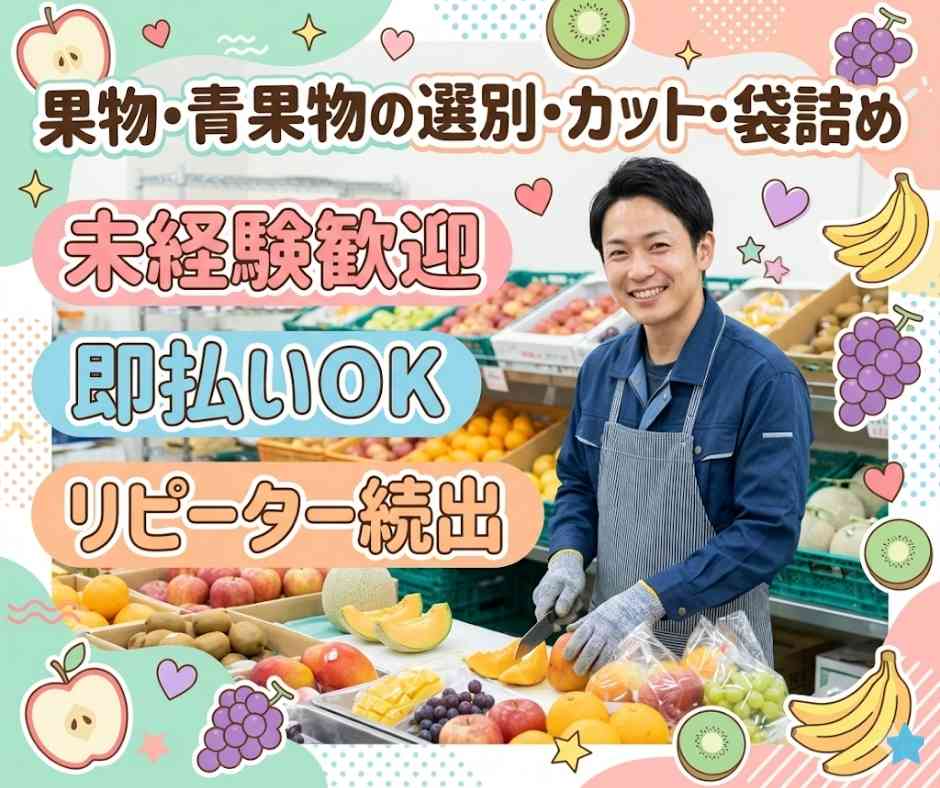 【業務内容】果物・青果物の選別・カット・袋詰め業務、その他付随業務