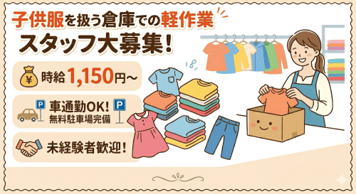 ■<マイカー◎即払◎>かわいい子供服の仕分け・梱包スタッフ