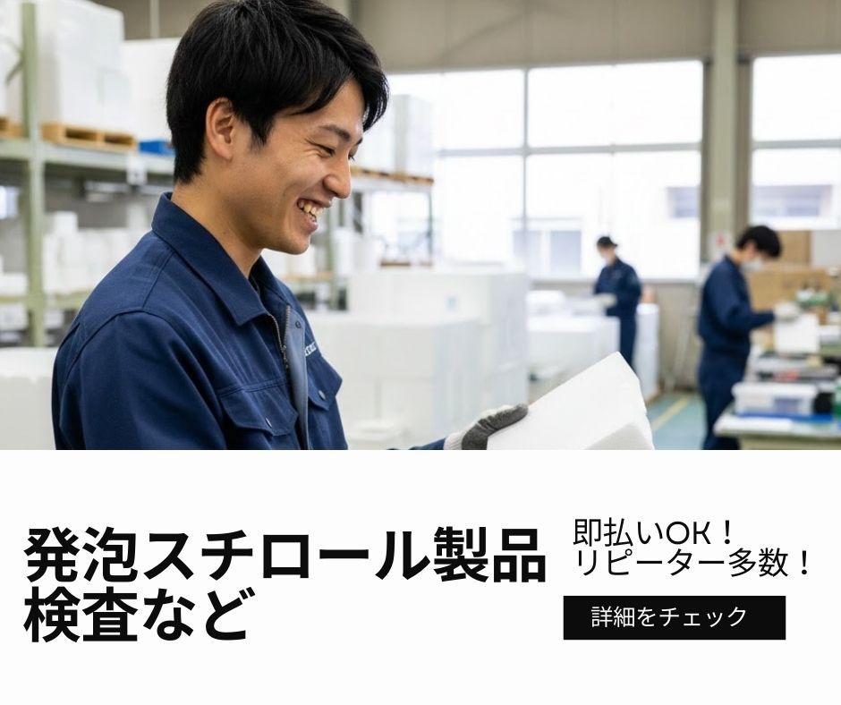 【時給1,080】発泡スチロール製品の検査