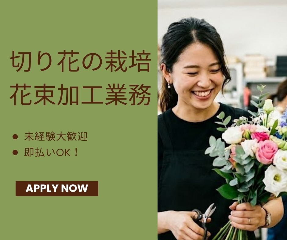 【作業内容】切り花の栽培、花束加工業務全般