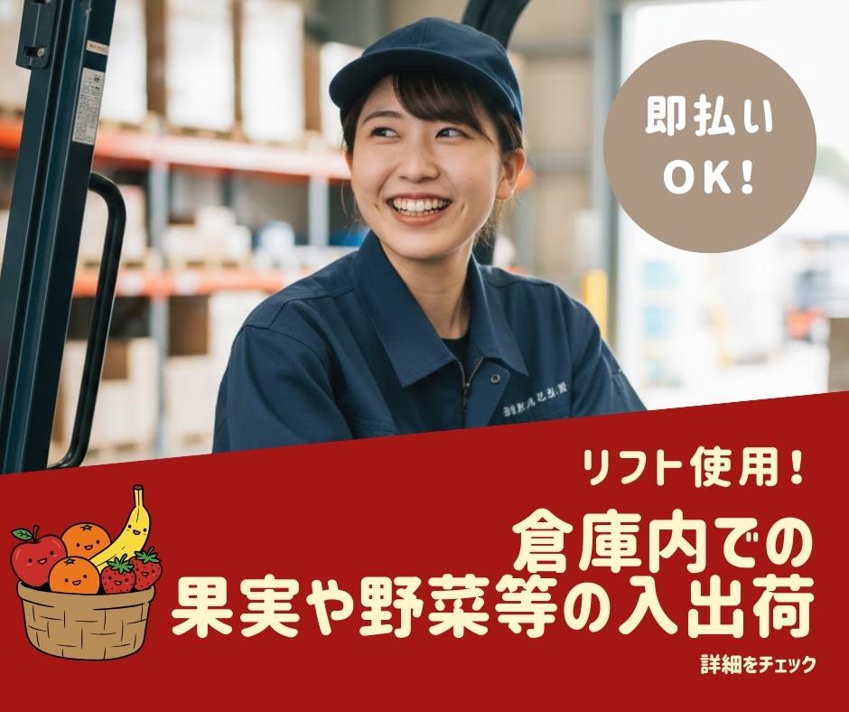 リフトを使用した倉庫内での果実や野菜等の入出荷作業