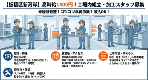 時給1400円+交通費(上限1500円/1日)軽作業