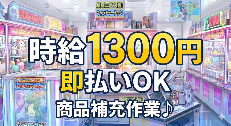 【B】時給1300円!アミューズメント施設の裏方倉庫作業♪