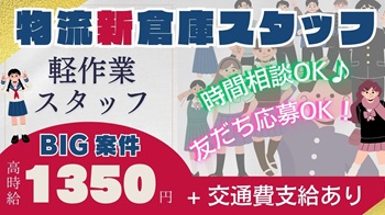 ★きれいな新倉庫!作業はどれも簡単な軽作業!