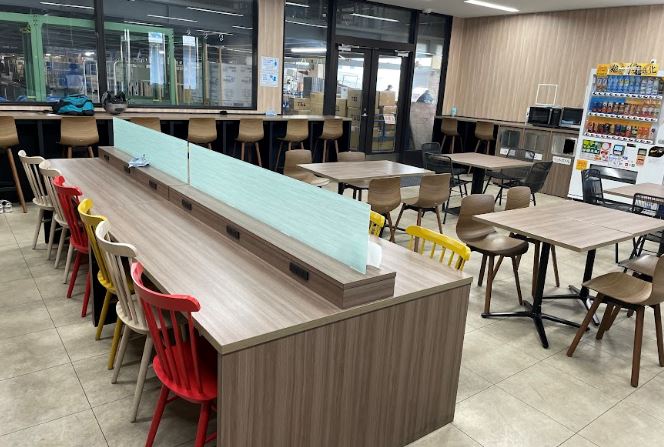 段ボールケースに入ったクッキーをシューターに入れたり、行先のラベルを貼る作業♪