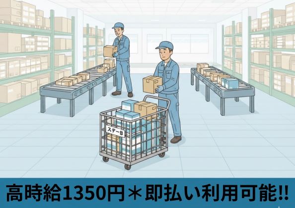 高時給1350円☆車・送迎有☆仕分け作業★即払可!!