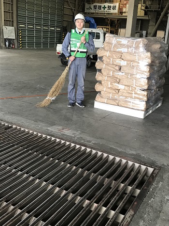 【作業内容】麦または米の袋の口を開ける、掃き掃除、コンテナに入れる作業