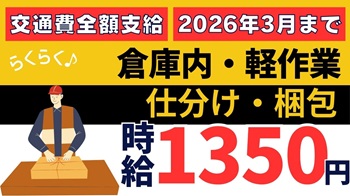 【【期間限定】】交通費あり★高時給1350円/倉庫内軽作業