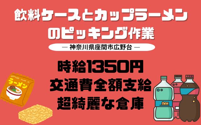 <座間>長期で安定★飲料品・カップメンのピッキング作業♪