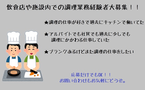※飲食店、またはセントラルキッチンでの調理経験のある方のみのご紹介になります