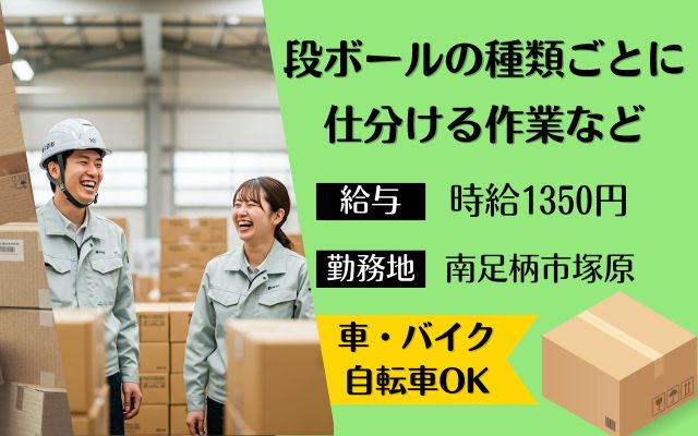 【南足柄】未経験者歓迎♪倉庫内作業/時給1350円☆