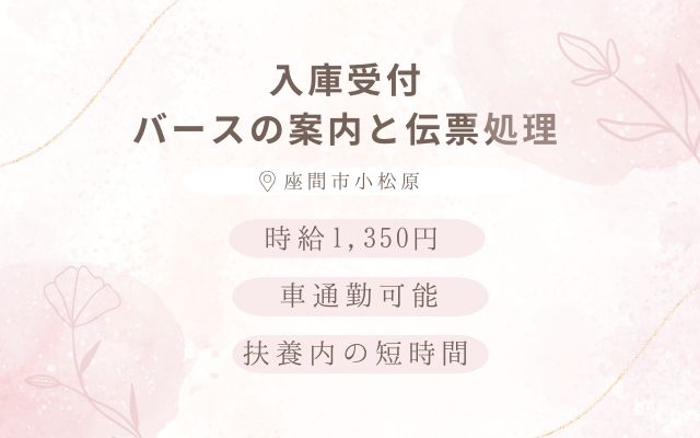 <座間市>入庫受付・バースの案内と伝票処理♪時給1350円