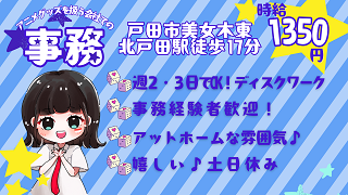 募SK【戸田市】少ない日数で働けるカンタン事務♪時給1250