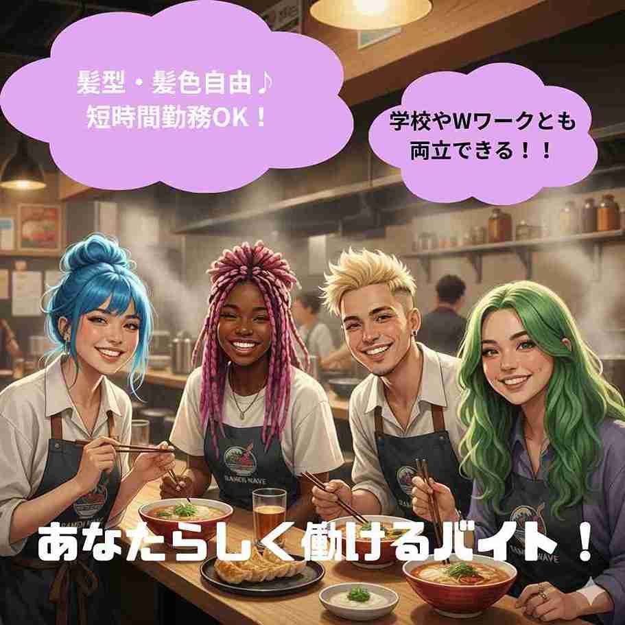 楽しくワイワイ働ける!ラーメン好き大歓迎♪ まかない付きでお腹もHAPPY!