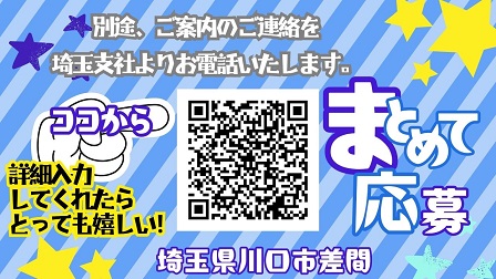 応募者の方には埼玉支社より電話でのご連絡をさせていただく場合がございます。
