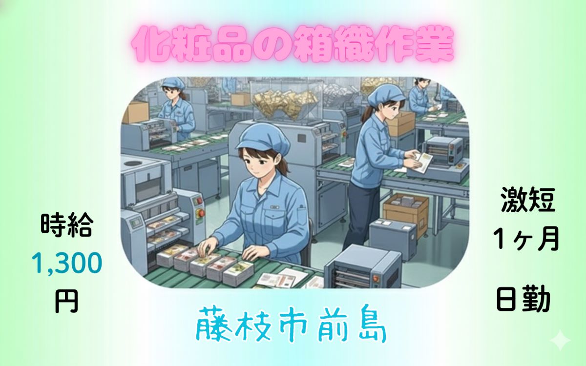 - ☆時給アップ!1,300円☆≪藤枝駅近≫☆化粧品の箱織り作業☆のバイト求人情報