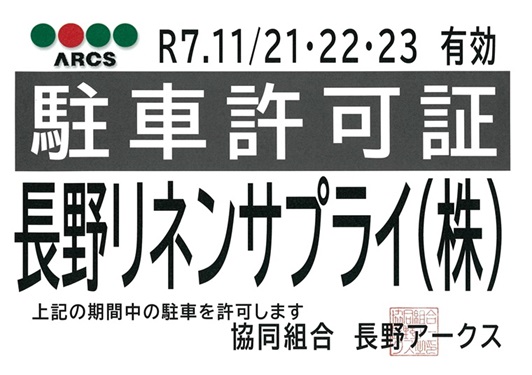 ※2025年11月21日~23日で就業される方は、添付画像2枚目を印字して駐車の際に車両運転席側ダッシュボードへの掲示をお願い致します。