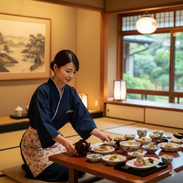 宿泊者のチェックイン対応・夕食配膳準備・客室案内・その他付随業務