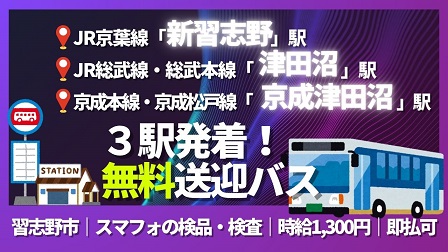 SKP【習志野市】時1300円!交通費有/スマホ検査作業♪♪