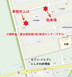 始業15分前に事務所入口前へ集合(場所は画像を参照) |