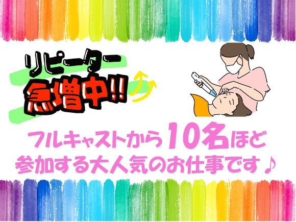 ※ベッドに寝て頂いただくだけのお仕事。顔にジェルを塗布して照射手順の練習モデルをして頂きます。