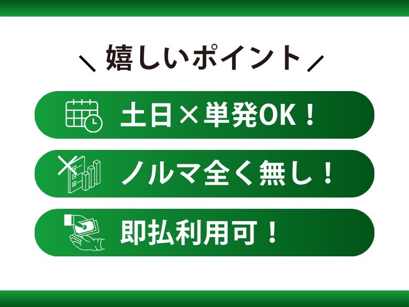 ・この求人は紹介でのご案内となります。紹介の求人は、紹介先の会社が雇用主となり、紹介先からの指揮命令を受けて勤務します。給与支払いは紹介先より行われます。なお、紹介先の会社が即払いサービスを利用している場合は、即払いサービスでの利用が可能です。詳しくはトップページのメニューより『派遣・請負・紹介について』をご覧ください。