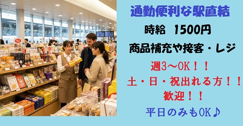 時給1500円+交通費≪新大阪駅構内≫販売スタッフ