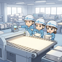 ・大判の紙(縦横1m程度)の専門裁断機でサイズに仕上げる
