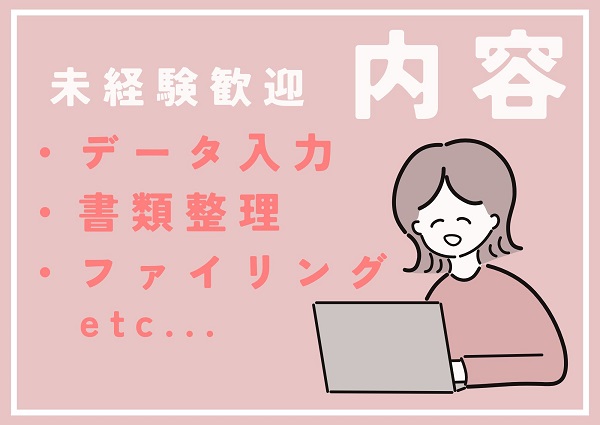 データ入力、書類整理、ファイリング、請求書作成、郵送処理など