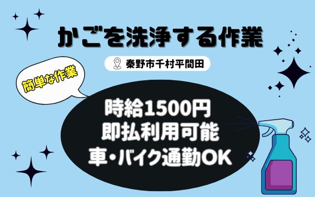 【秦野】かごを洗浄する作業?高時給!交通費支給有♪