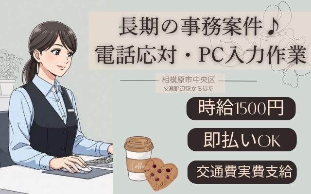 長期*淵野辺駅/時1500円+交実費♪電話対応・事務作業など