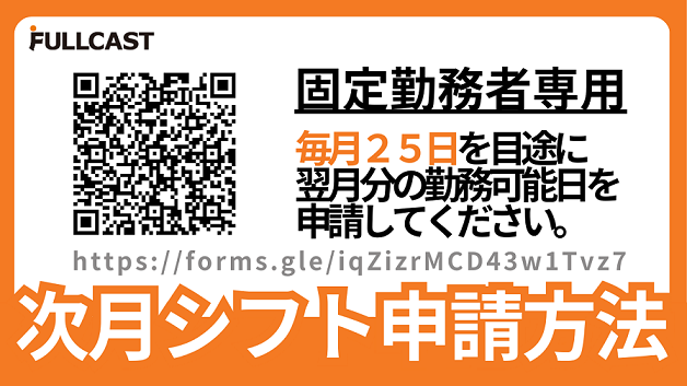 この求人は勤務終了時にキャストポータルで勤務実績報告を入力する求人です。