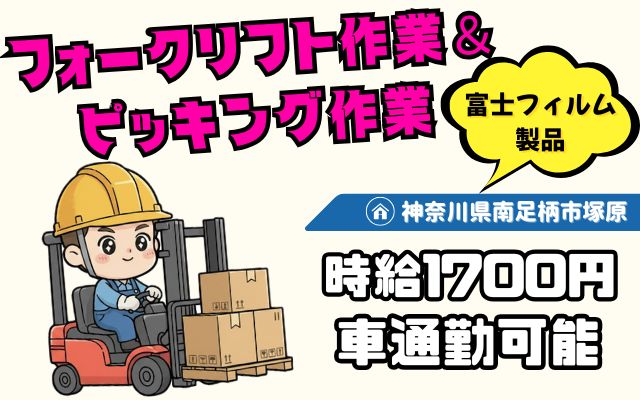 【南足柄市】フォーク&ピッキング業務!高時給1700円♪