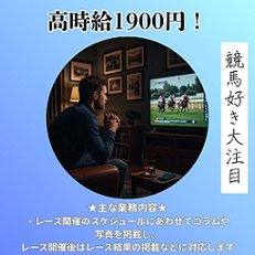 ※競馬開催日のシフトは輪番制で、業務に慣れてきたら相談の上、早番シフトをお願いする予定です