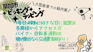 ◆期間限定求人◆人気の軽作業 ◆即給利用可能◆初めての倉庫内作業でもOK!