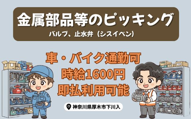車OK【厚木市】高時給!金属部品のピッキング♪即払いOK