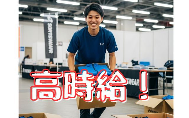 スポーツウェア、ジャージなどの販売イベントの片付けのお仕事です。