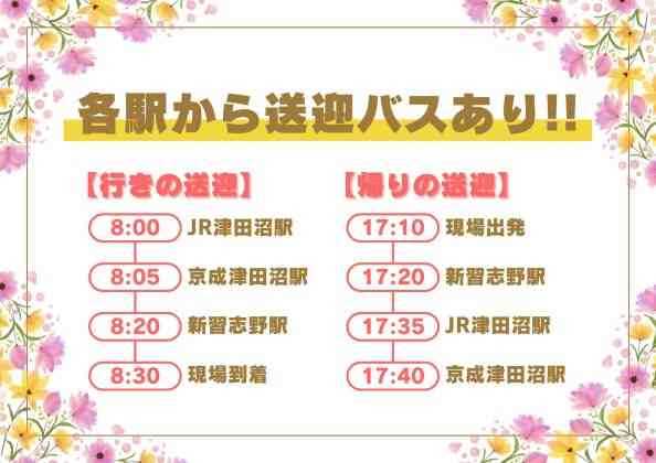 JR津田沼駅、京成津田沼駅、新習志野駅から送迎バスあり!時給1,300円+交通費500円支給!